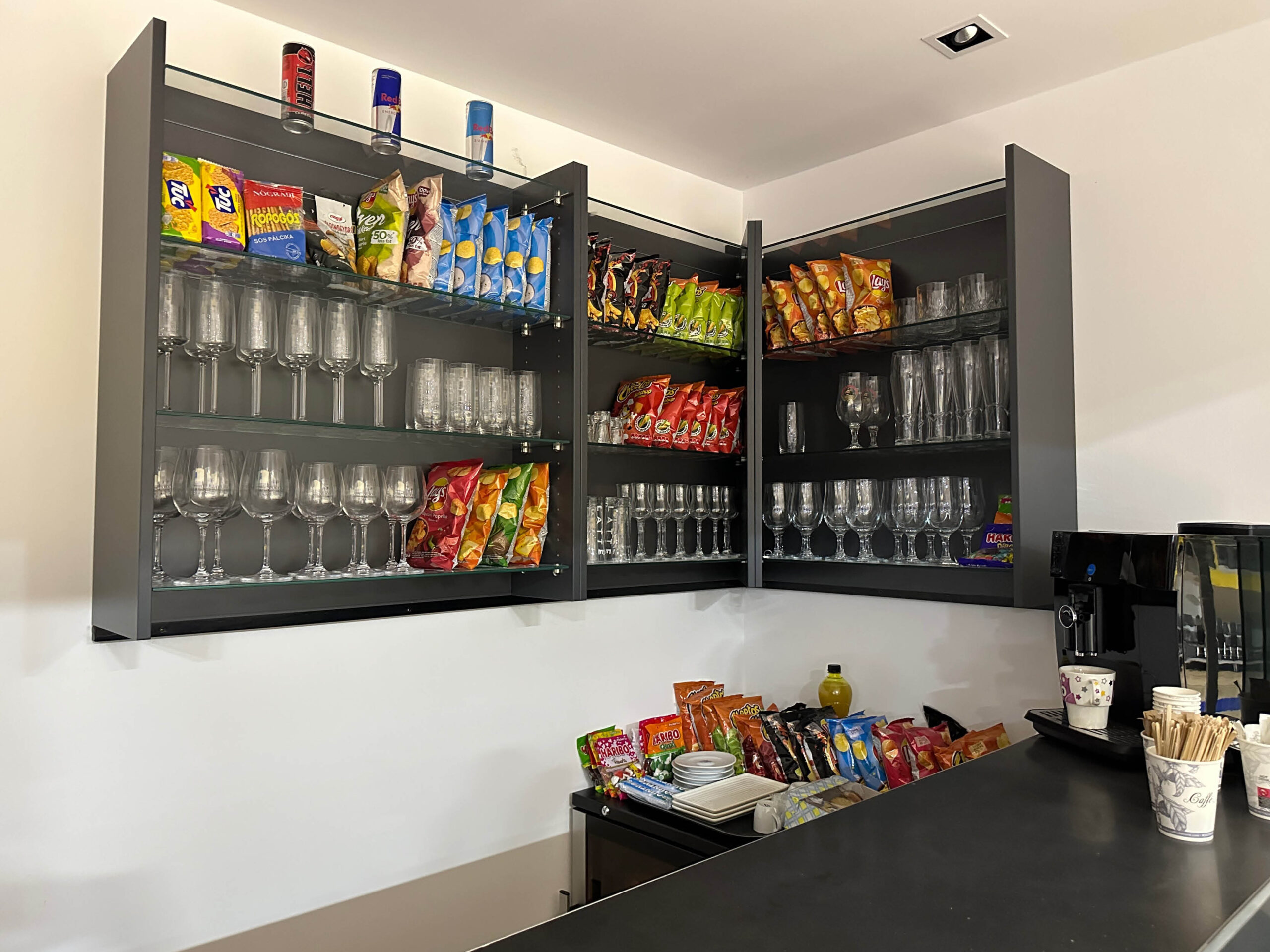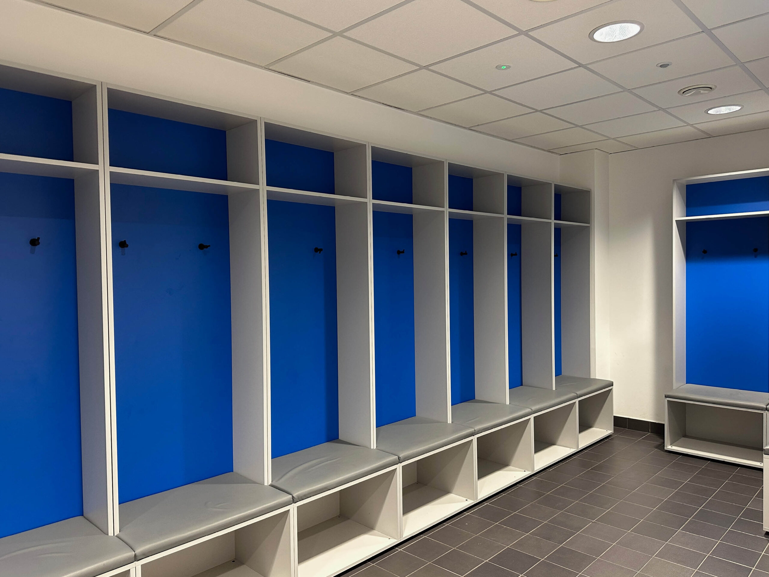 Különösen büszkék vagyunk az egyedi beépítésekre és az irodai terek komplett berendezésére, amelyek jól példázzák, hogyan valósítható meg funkcionális, tartós és esztétikus bútorozás egy különleges, sokrétű sportlétesítményben.